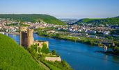 Nach dem geführten Altstadtrundgang nehmen Sie Platz in der Seilbahn und schweben über den Rhein zur Festung Ehrenbreitstein. Der Ausblick über die Stadt und das Deutsche Eck wird Sie begeistern. Anschließend lernen Sie die Festung während einer Führung näher kennen. Von der Festung aus machen Sie sich auf den Weg nach Rüdesheim, einer alten Winzerstadt, die schon die Römer für den Weinbau schätzten. Der mittelalterliche Kern der Stadt und Teile der Stadtbefestigung, wie der Adlerturm, sind erhalten. Hier finden Sie urige Weinschänken und Lokale in historischen Fachwerkhäusern. Kein Tourist verlässt diese international bekannte Stadt ohne einen Besuch der weltberühmten Drosselgasse.