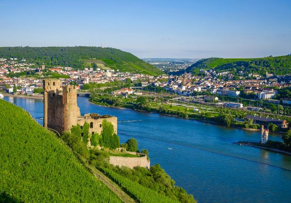 Rüdesheim am Rhein ist eine malerische Stadt, die für ihre atemberaubende Landschaft, ihre Weintradition und ihre lebendige Kultur bekannt ist. Die Stadt liegt im Herzen des UNESCO-Weltkulturerbes Oberes Mittelrheintal und zieht jedes Jahr zahlreiche Besucher an, die die beeindruckenden Weinberge, historischen Gebäude und die charmante Altstadt erkunden möchten. Besonders hervorzuheben ist die Drosselgasse, eine enge Gasse, die von traditionellen Weinstuben, Restaurants und Geschäften gesäumt ist und ein beliebter Treffpunkt für Touristen ist. Rüdesheim ist auch für seine Weinfeste und die hervorragenden Rieslinge bekannt, die in der Region produziert werden. Die Stadt hat eine lange Geschichte, die bis ins Mittelalter zurückreicht, und bietet zahlreiche Sehenswürdigkeiten, darunter das Niederwalddenkmal, das einen herrlichen Blick auf das Rheintal bietet. Ein Besuch in Rüdesheim ist eine hervorragende Möglichkeit, die deutsche Weinkultur zu erleben, die malerische Landschaft zu genießen und die herzliche Gastfreundschaft der Einheimischen zu entdecken.