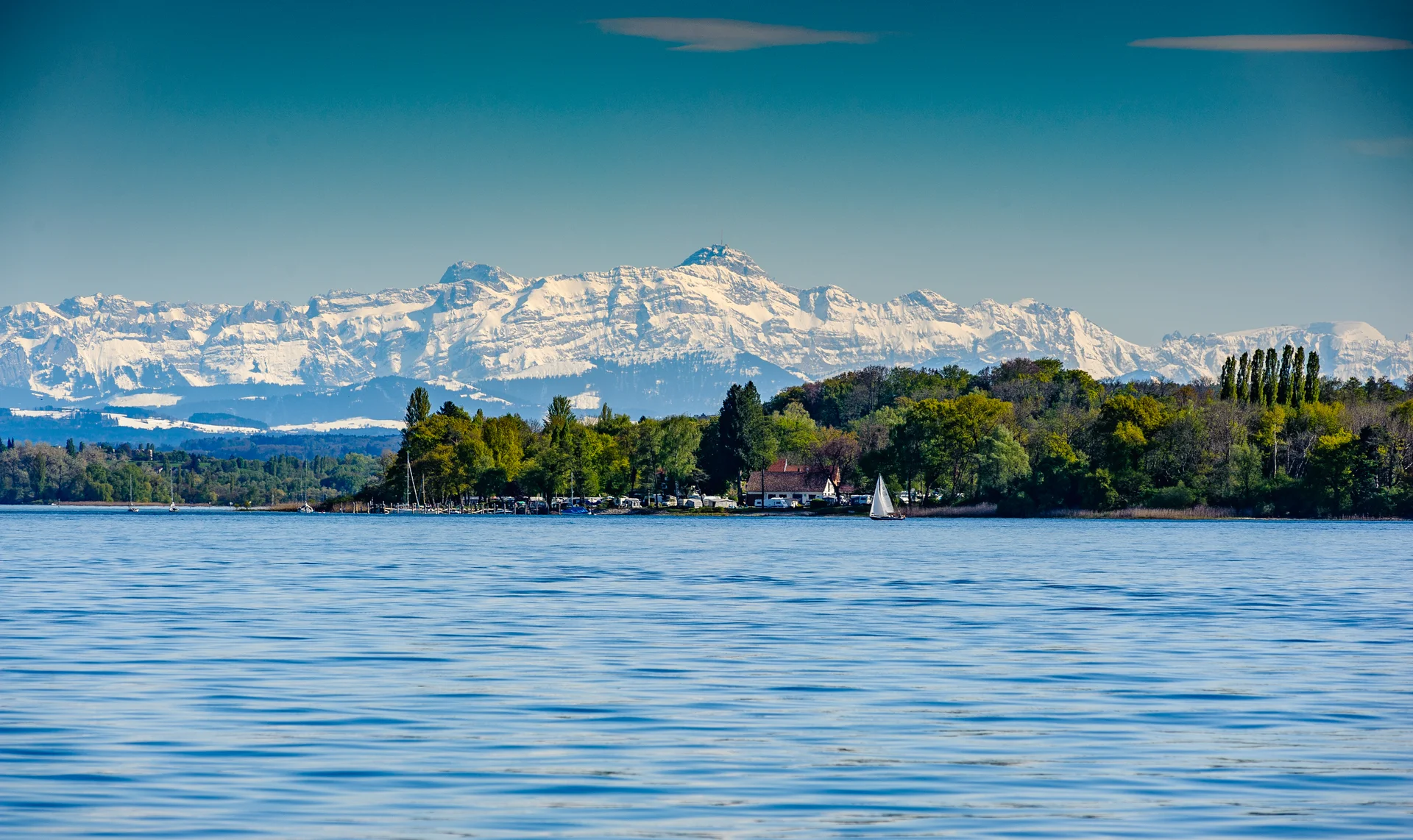Mündung des Alten Rheins. In Sichtweite des schweizer Hafenstädtchens Rorschach wird der Bodensee überquert, dann